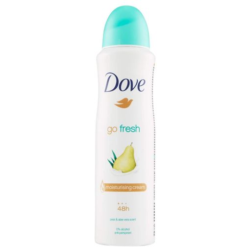 GO FRESH pear & aloe vera deo vapo de Dove. El desodorante en spray antitranspirante, que ofrece 48 horas de protección, combate el sudor y los olores, al mismo tiempo que cuida la piel, ya que incorpora ¼ de crema hidratante para proteger la sequedad y la irritación cutánea. Su fórmula no contiene alcohol y está testada dermatológicamente.