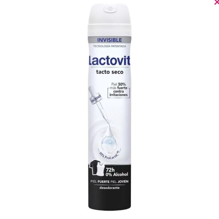 LACTOVIT DESODORANTE SPRAY Invisible Anti- manchas de Lactovit. Disfruta del Desodorante Invisible Anti-Manchas de Lactovit con un 0% de Alcohol. Evita las manchas blancas y amarillas en tu ropa a la vez que proteges y cuidas la piel de tus axilas, día tras día las sentirás suaves y secas gracias a sus componentes de la leche y una eficaz duración de 48h.